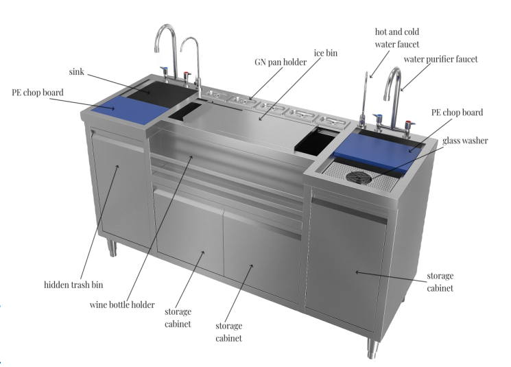 - Lighting, such as LED, to highlight bottles and assist bartenders in dim settings.